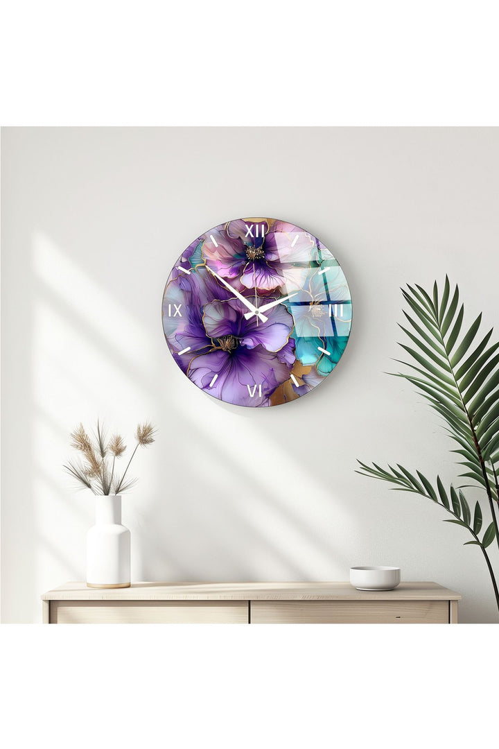 Çiçek Desenli Modern Duvar Saati - Renkli Tasarım | Huhu341