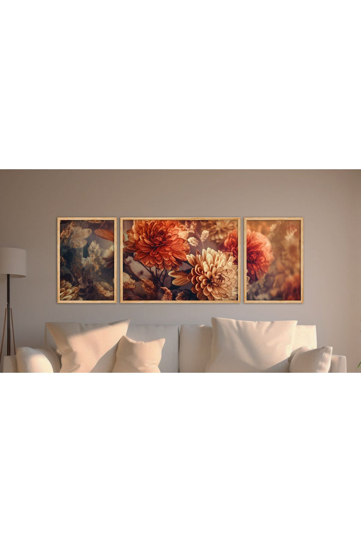 Çiçek Desenli Modern Tablo Seti - 3’lü Set | Huhu308