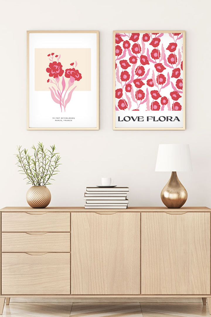 Çiçek Desenli Modern Tablo Seti - Pastel 2’li Set | huhu169