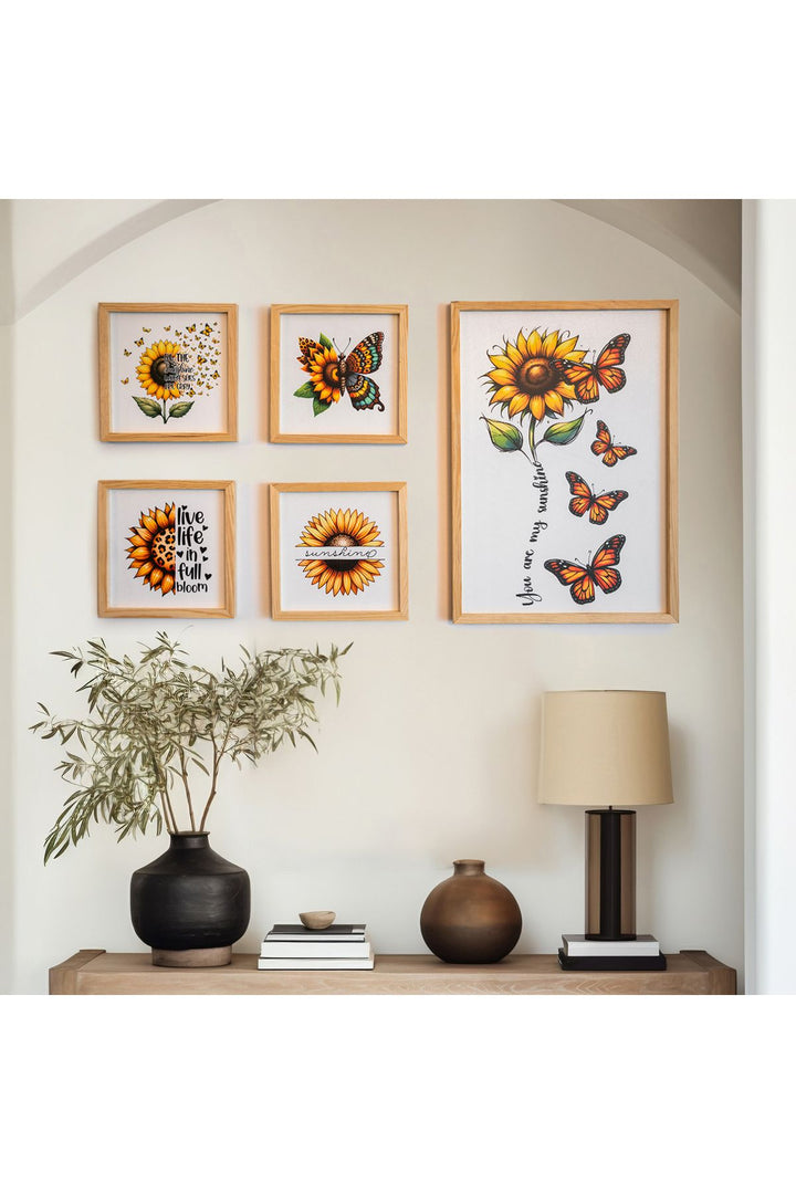 Çiçekli ve Kelebekli Tablo Seti - 5’li Modern Dekor | huhu411
