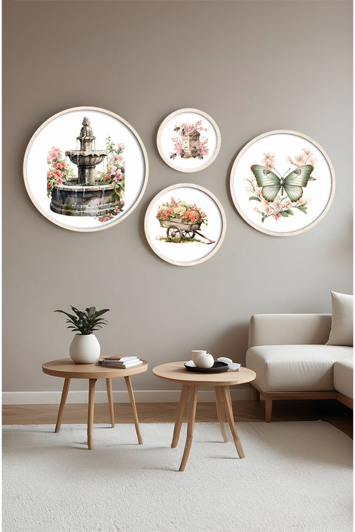 Pastel Tonlu Modern Tablo Seti – 4’lü Yuvarlak Set | Huhu415