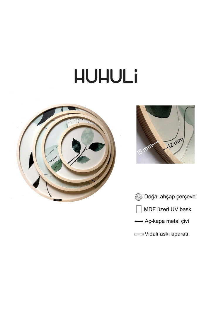 Dekorasyonunuza doğal bir dokunuş katarak, 5 farklı boydan oluşan yuvarlak ahşap tablo seti. MDF üzerine dayanıklı ahşap çerçeveli tasarımıyla uzun ömürlü kullanım sağlar. Oturma odasından yatak odasına, ofislerden kafelere kadar her ortamda estetik bir görünüm yaratır. Birlikte ya da tek başına kullanarak yaşam alanlarınızı kişiselleştirin. Ürün 5 farklı ölçüden oluşmaktadır. **Ürün Özellikleri:** • 5 Farklı Boyut: 45 cm, 39 cm, 33 cm, 27 cm, 21 cm boyutlarında çeşitlilik • Doğal Ahşap Çerçeve: %100 doğal ahşap çerçeveler ile dayanıklı yapı • UV Baskı Teknolojisi: MDF üzerine yüksek kaliteli UV baskı ile net görüntü • Ömür Boyu Garanti: Solmama garantili, uzun süre parlaklığını korur **Kullanım Alanları:** • Oturma odası, yatak odası, ofis ve kafe dekorasyonu • Duvara çivi yardımıyla kolay montaj • İstediğiniz dizilimde veya farklı kombinasyonlarda asabilirsiniz • 3'lü, 5'li şeklinde farklı duvarlarda konumlandırma imkanı Hemen keşfedin. Bu çiçekli vintage tablo seti, ev dekorasyonunuza zarif bir dokunuş katıyor. Farklı tasarımlarıyla duvarlarınızı canlandırın. Hemen keşfedin.