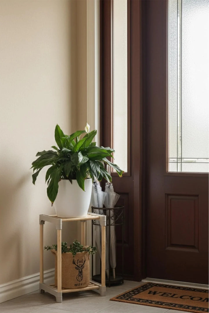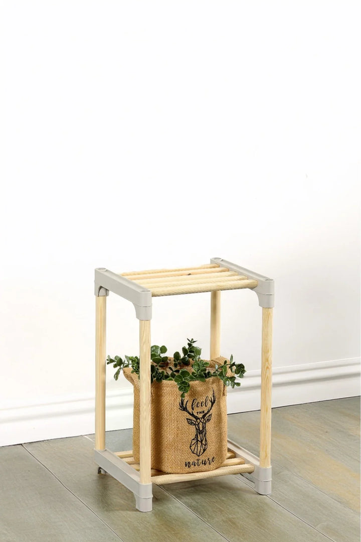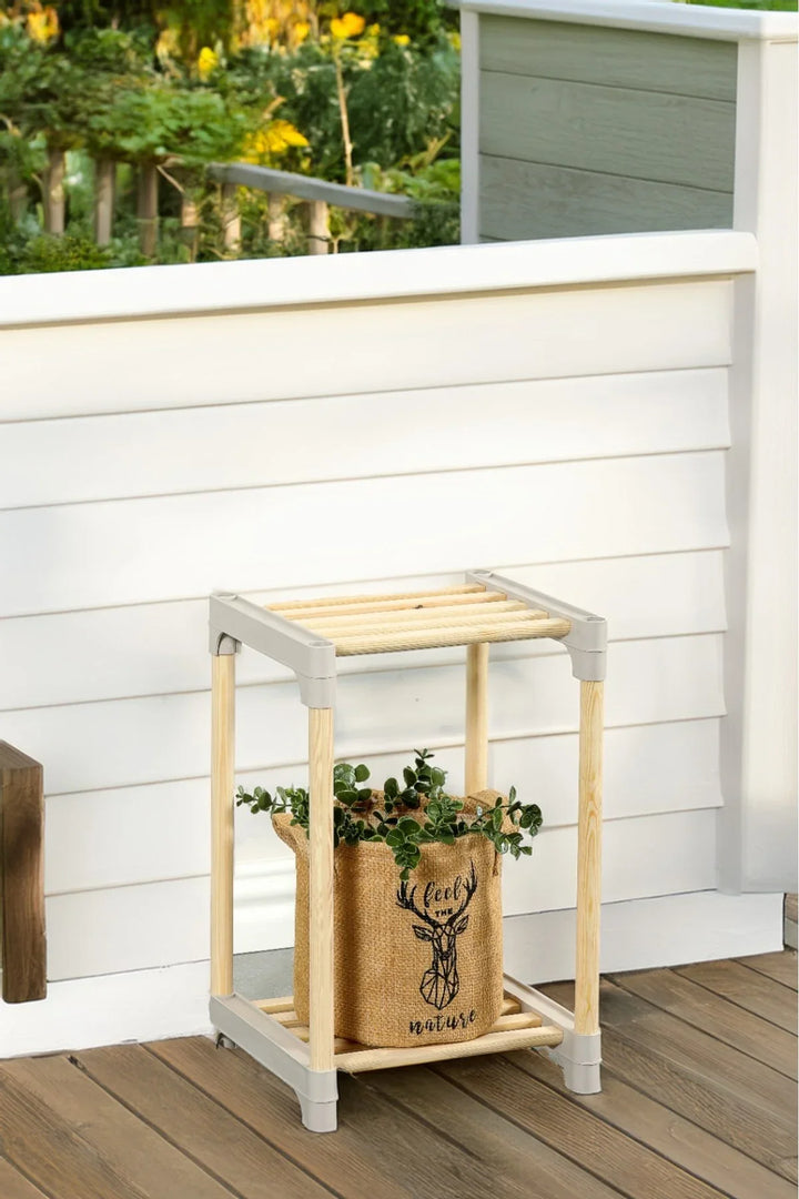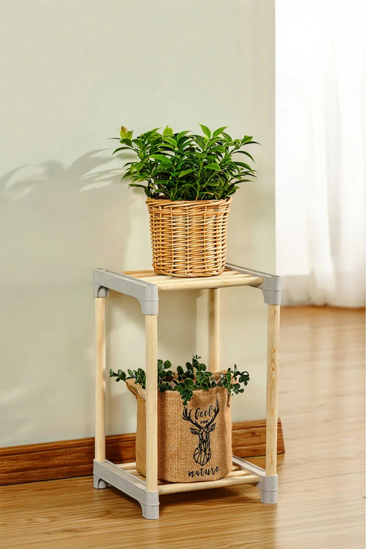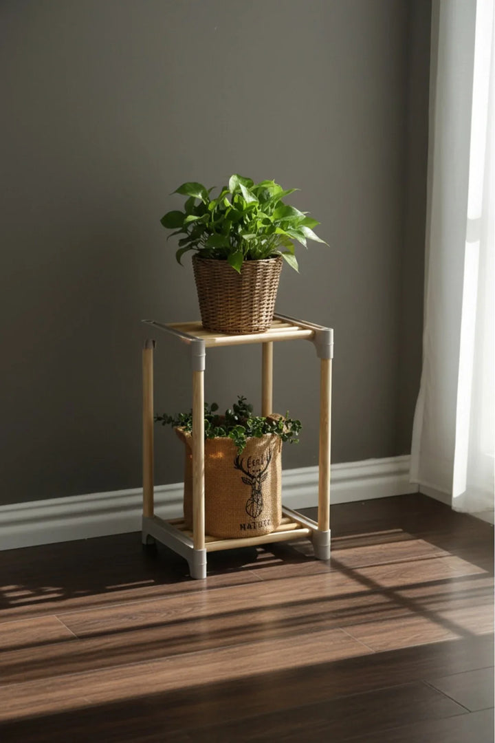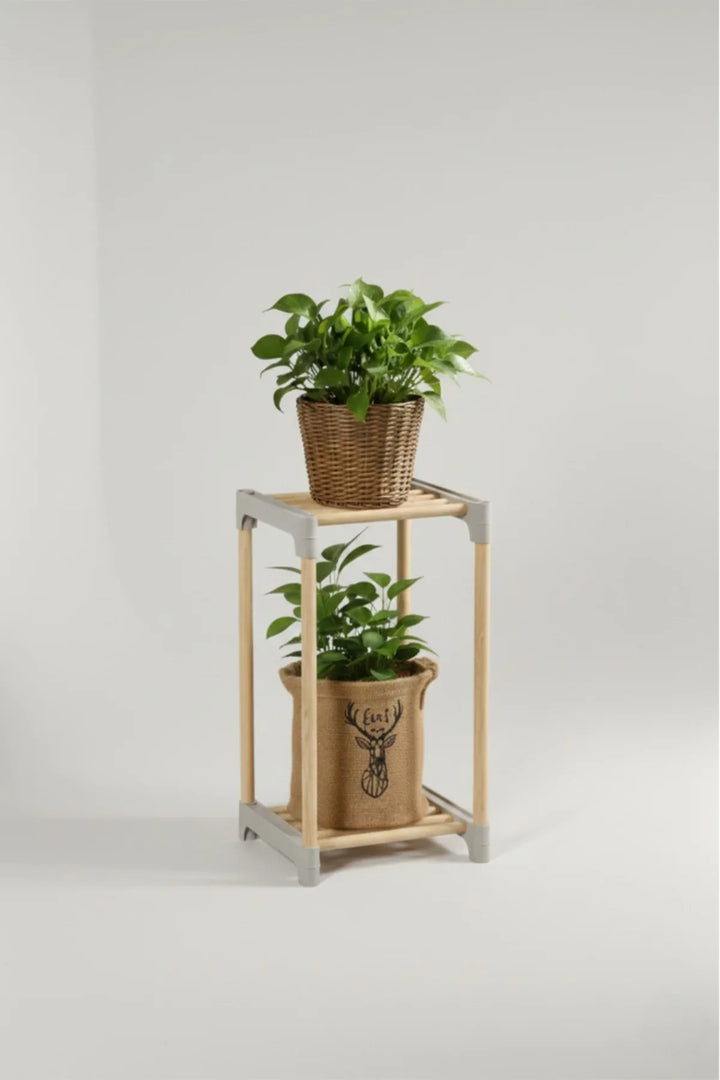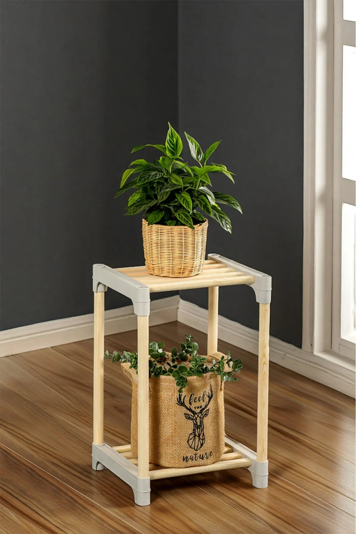Doğal Ahşap & Modern Tasarım Saksılık Standı – İç Mekan & Balkon Bitki Rafı | Saksı-M-1
