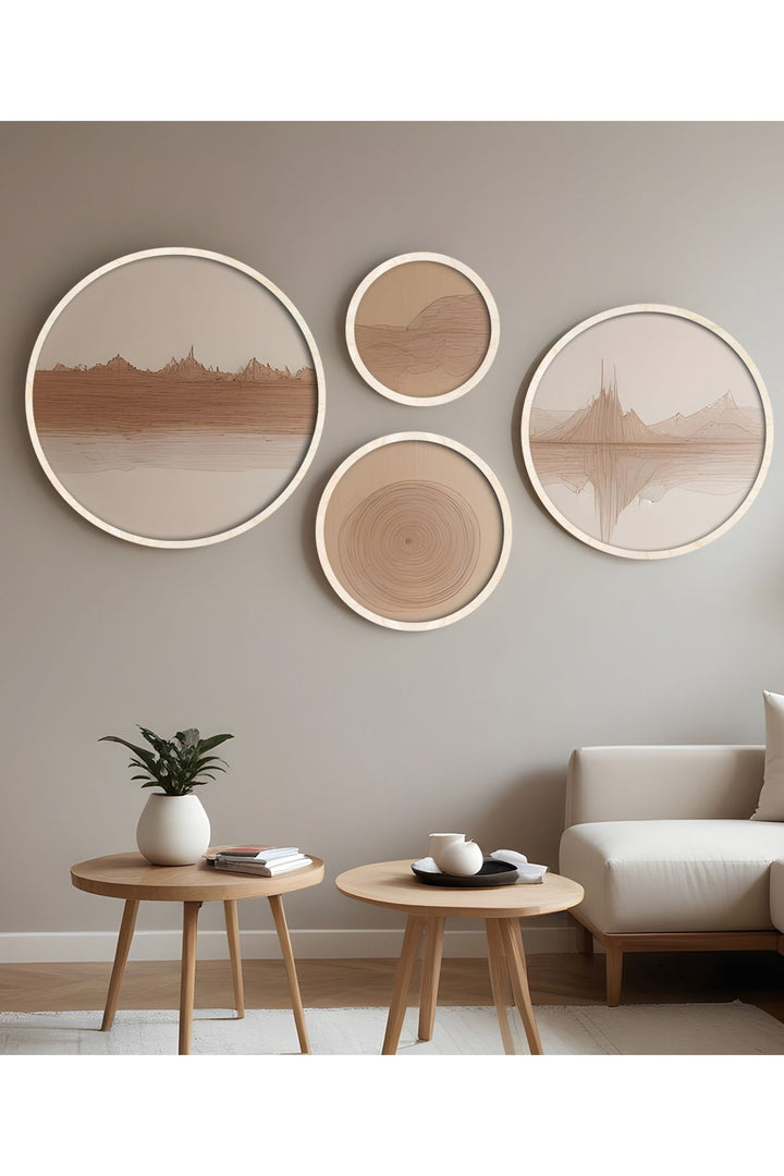Geometrik Desenli Bej Tablo Seti - 4'lü Yuvarlak Set | huhu300