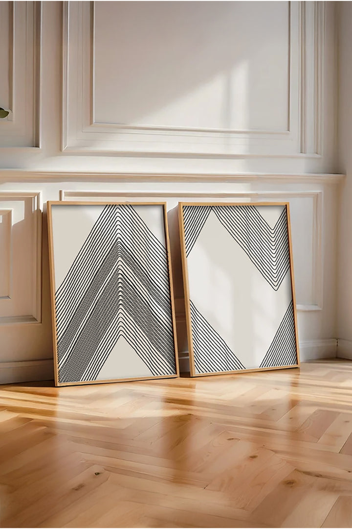 Geometrik Desenli Siyah-Beyaz Tablo Seti - Modern 2’li Set | huhu74