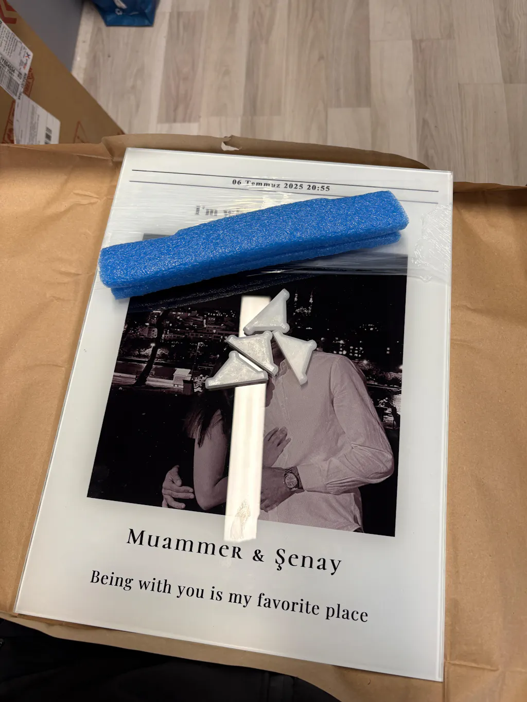 Bazı anlar vardır, bir dönemin en güzel bölümünü temsil eder ❤️Anniversary Edition cam tablo, birlikte yazılan hikâyenin en özel sayfasını; isimler, tarih ve fotoğrafla...
