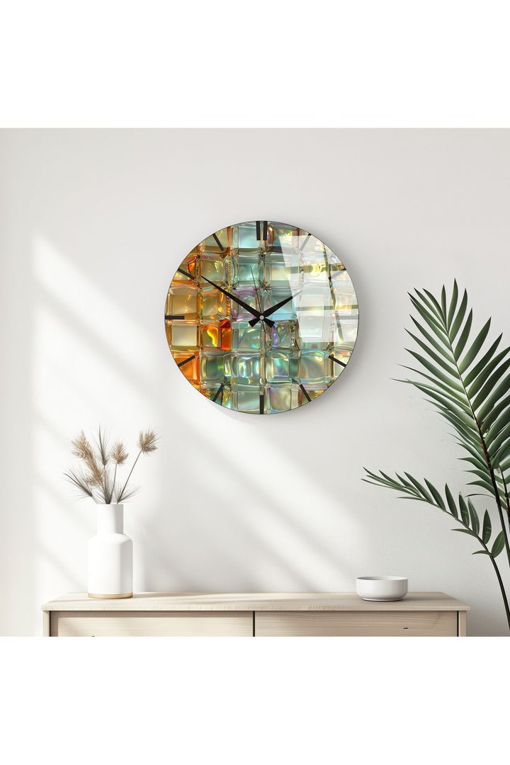 Modern Geometrik Desenli Duvar Saati - Şeffaf Renkli | Huhu336