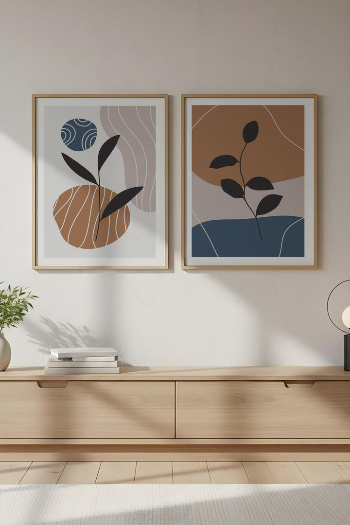 Doğal Ahşap Çerçeveli Sanat: Yaşam Alanınıza Modern Dokunuş Minimalist estetiği modern sanatın enerjisiyle birleştiren bu özel tasarım set, mekanınıza anında sanatsal bir şıklık katar....