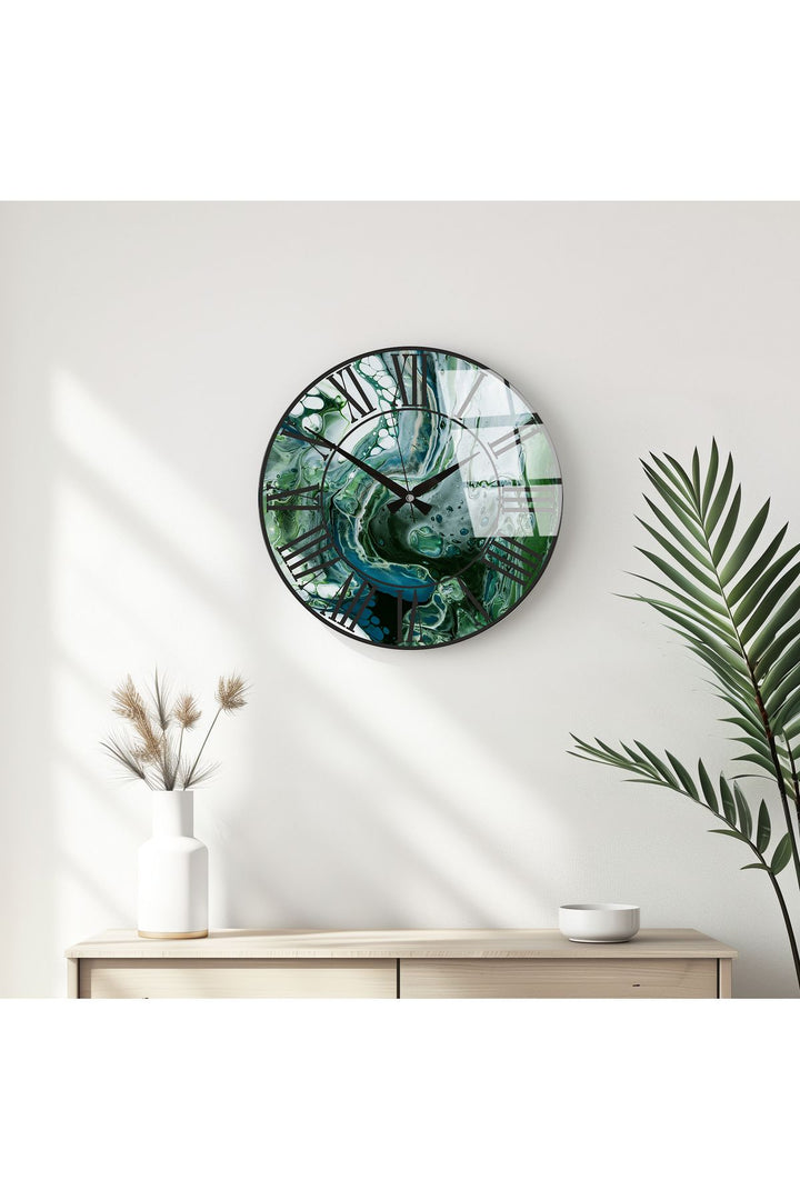 Modern Yeşil Desenli Duvar Saati - Şık Tasarım | Huhu334