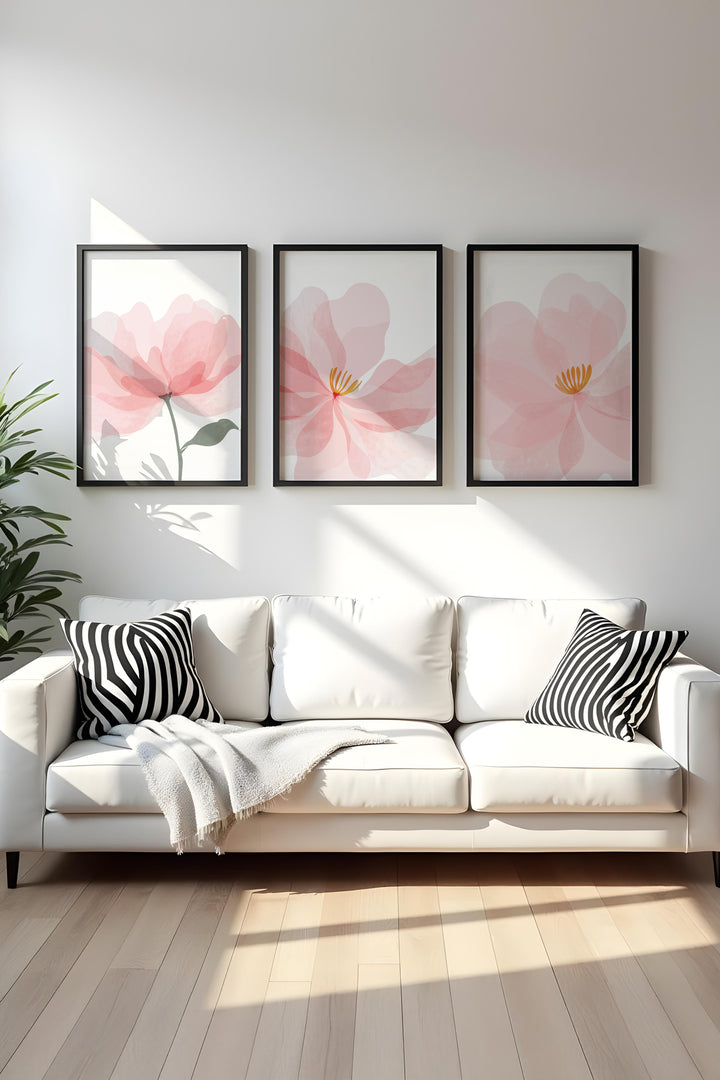 Pastel Renkli Çiçek Tablo Seti - Modern 3’lü Set | huhu192