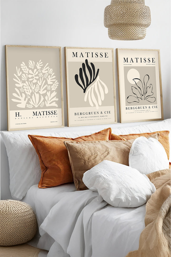 Soyut Desenli Bej Tablo Seti - Modern 3’lü Set | huhu487