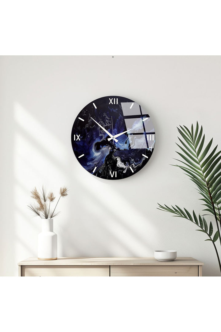 Soyut Desenli Duvar Saati - Mavi ve Siyah | Huhu344