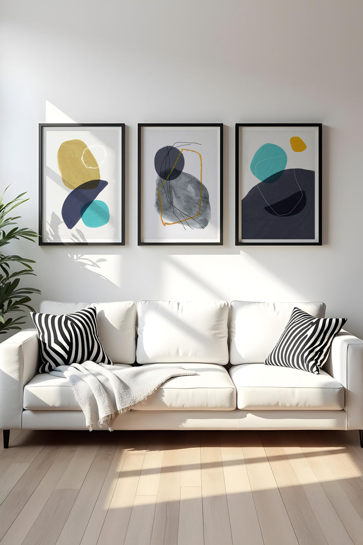 Soyut Desenli Modern Tablo Seti - 3’lü Çerçeveli Set | huhu118