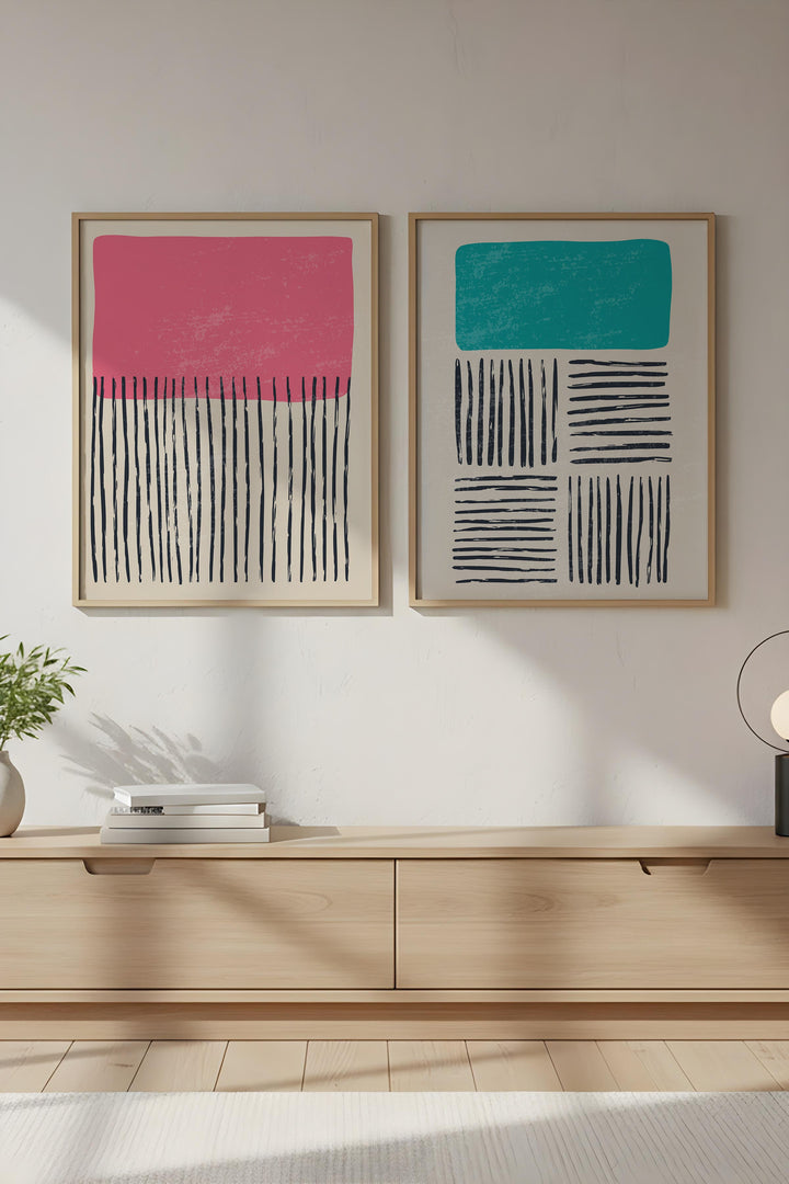 Doğal Ahşap Çerçeveli Sanat: Yaşam Alanınıza Modern Dokunuş Minimalist estetiği modern sanatın enerjisiyle birleştiren bu özel tasarım set, mekanınıza anında sanatsal bir şıklık katar....
