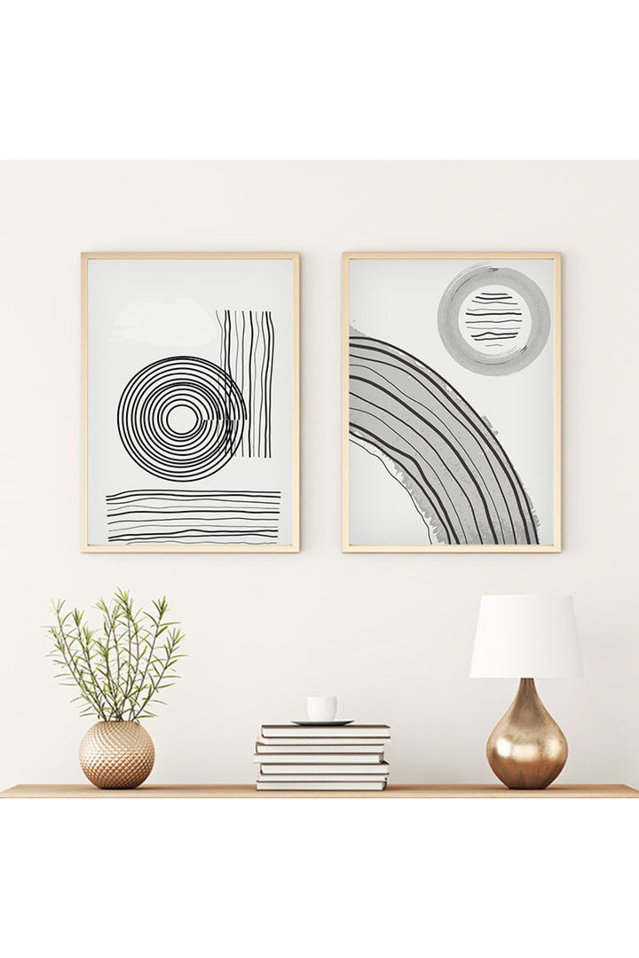 Soyut Desenli Siyah-Beyaz Tablo Seti - Modern 2’li Set | huhu58