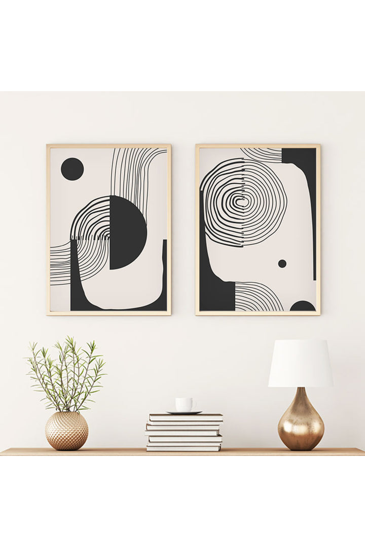 Soyut Desenli Siyah-Beyaz Tablo Seti - Modern 2’li Set | huhu75
