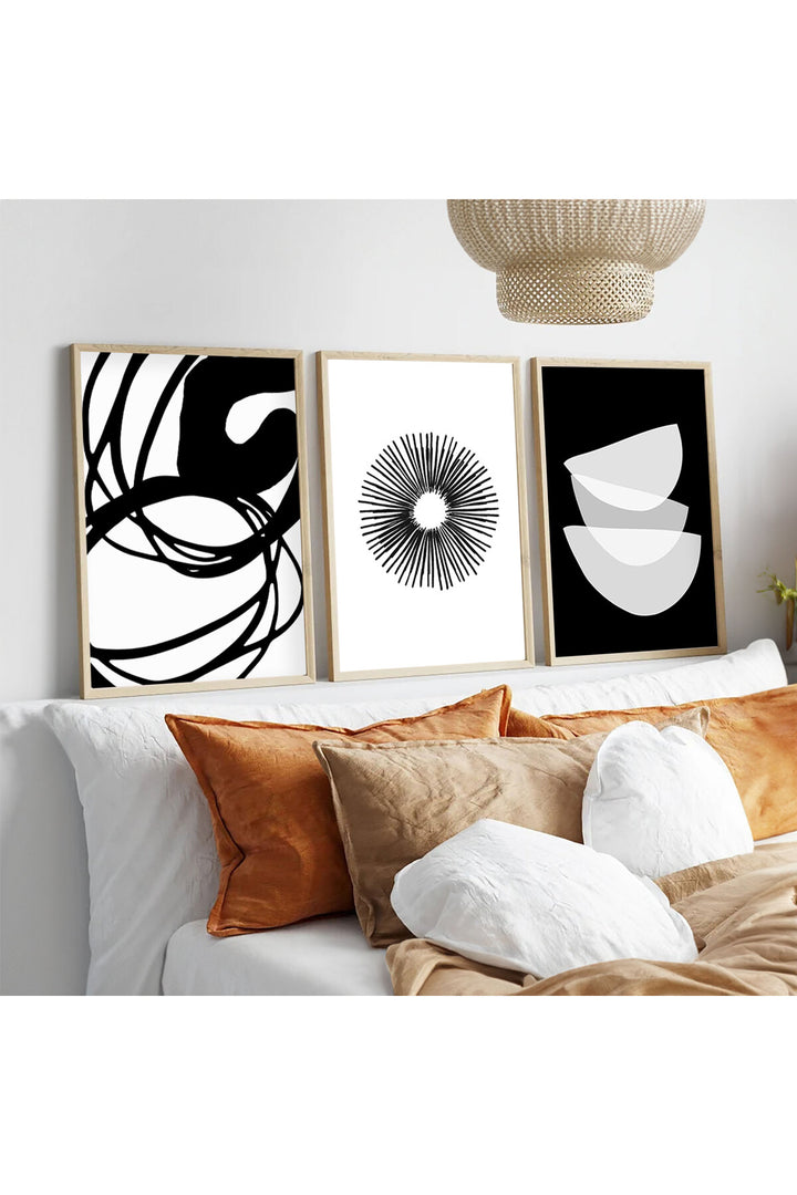 Soyut Desenli Siyah-Beyaz Tablo Seti - Modern 3’lü Set | huhu241