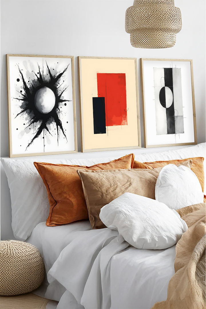Soyut Desenli Tablo Seti - Modern 3’lü Set | huhu424