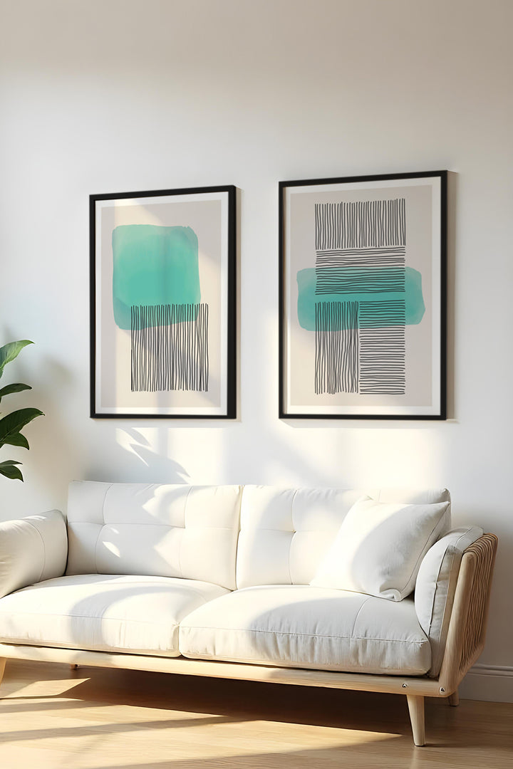 Soyut Desenli Turkuaz Tablo Seti - Modern 2’li Set | huhu140