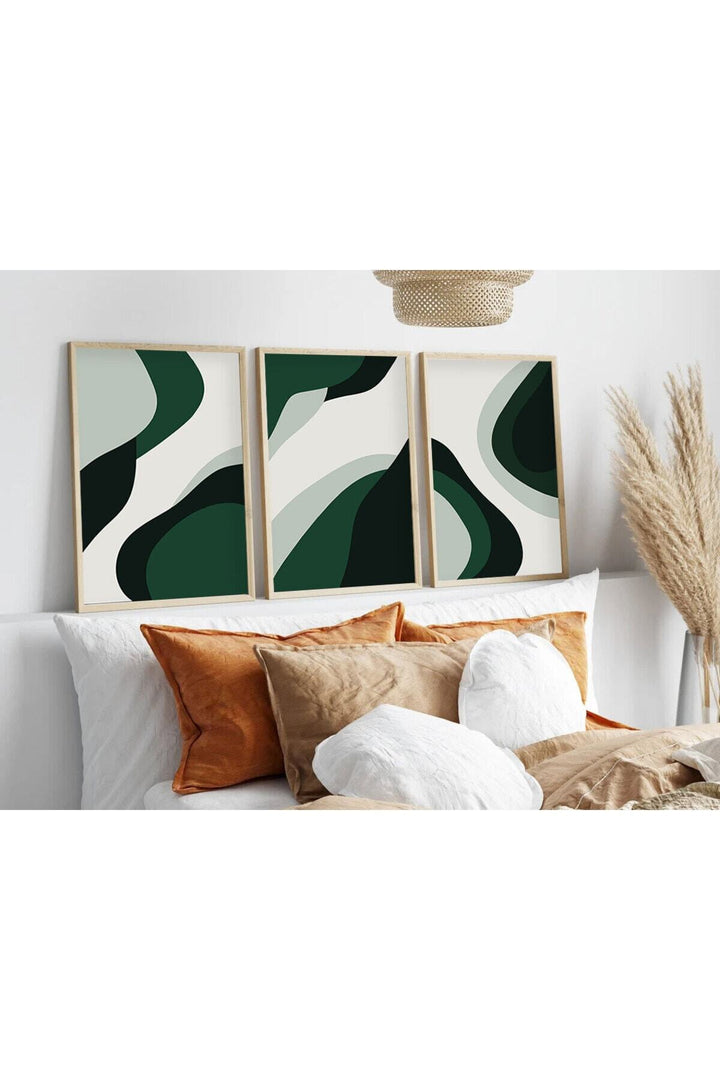 Soyut Desenli Yeşil Tablo Seti - Modern 3’lü Set | huhu204