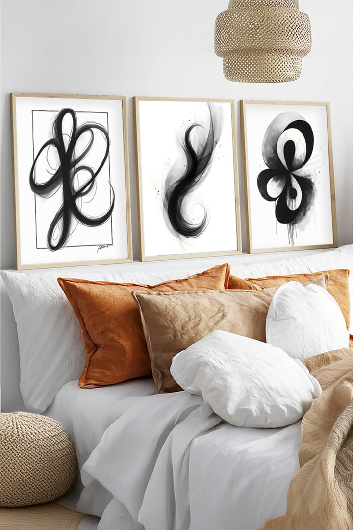 Soyut Siyah Beyaz Tablo Seti - Modern 3’lü Set | huhu430