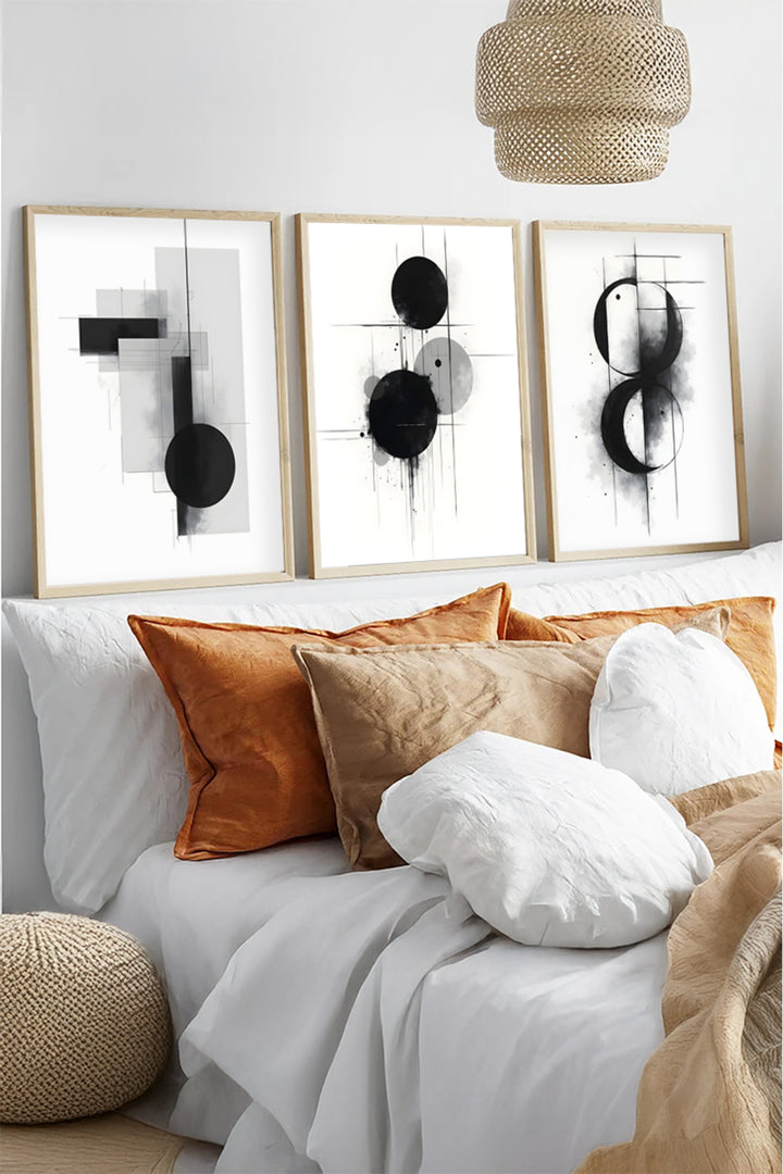 Soyut Siyah-Beyaz Tablo Seti - Modern 3’lü Set | huhu431